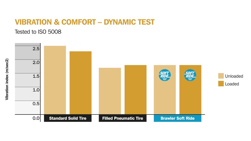 La combinación del compuesto Soft Ride con las aperturas elípticas características de Brawler, ofrecen una mayor absorción de impactos y reducción de las vibraciones, produciendo un menor desgaste del equipo e incrementando el confort del operario.
